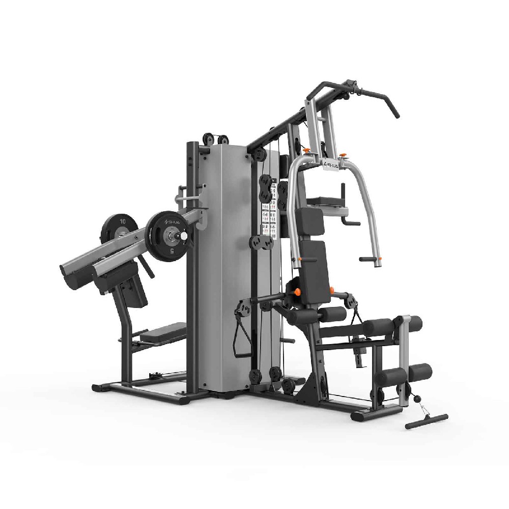 主要功能 胸大肌、三角肌前束、肱三头肌、三角肌、股四头肌、臀大肌、股二头肌、背部肌群、腹直肌、肱二头肌、大腿内外侧肌群1、阻力形式:配重块共两组66kg+90kg;最小调节重量6kg(杠铃片另配)2、最大训练载荷:配重组共两组66kg和90kg,杠铃挂杆最大承载重量120kg(单边60kg)3、垫类(坐/背/胸/肘垫):辅助垫由再生棉