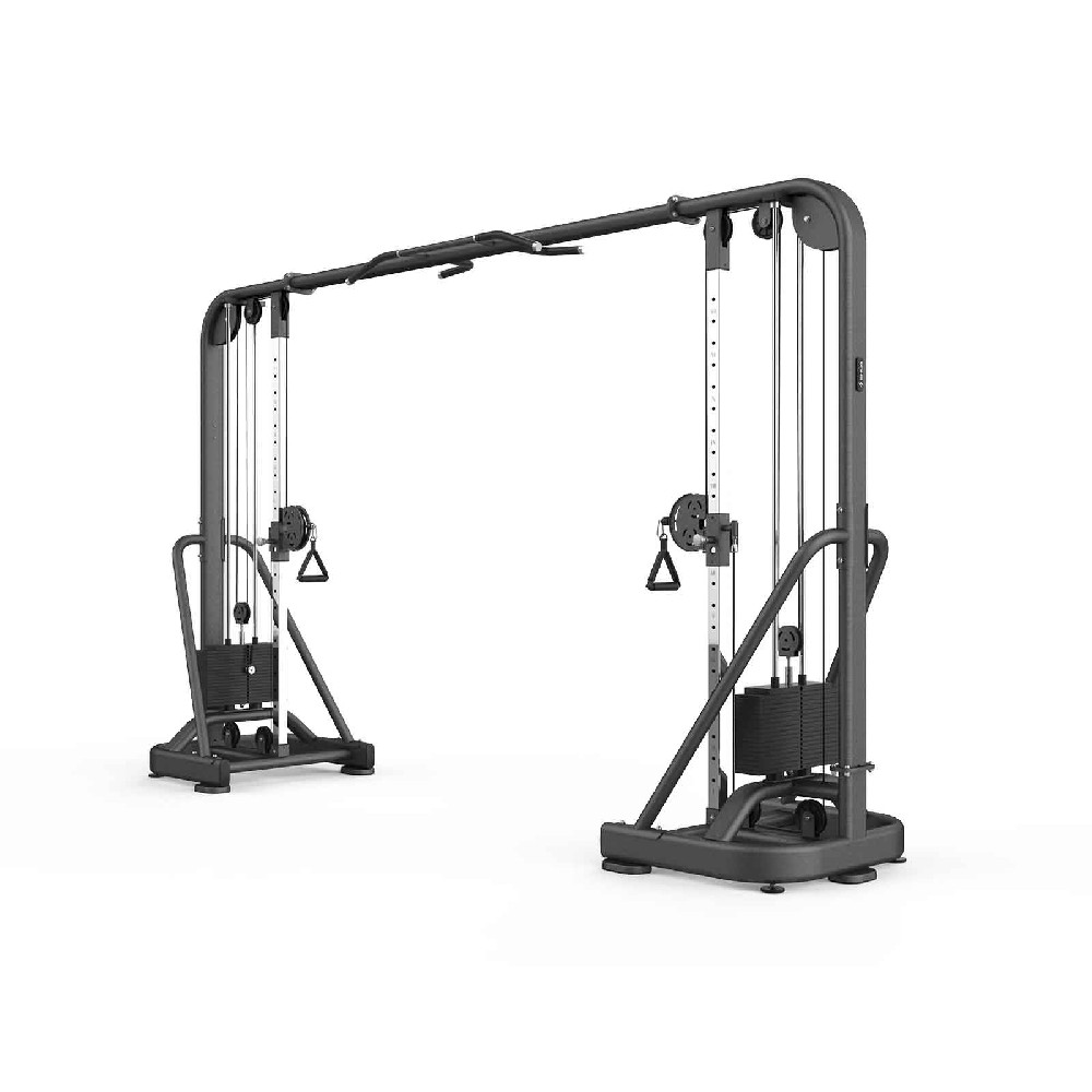 主要功能 锻炼背阔肌、斜方肌、三角肌后束、肱二头肌、肱三头肌、大小圆肌、胸大肌1、阻力形式:配重块每组90kg,共两组;总重180kg;最小调节重量5kg2、最大人体承重:150kg3、主要管材规格:龙门架平椭120502.0mm4、牵索形式:日本进口钢丝绳;¢5.6mm5、滑轮:尼龙加纤;¢117mm6、手把:黑色;TPU材质7、端盖